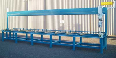 The manually operated Clamping Bench is used to clamp long length laminations. Once clamped, the workpiece (in Clamps) can be removed with the aid of a forklift and the next clamps and workpiece added.